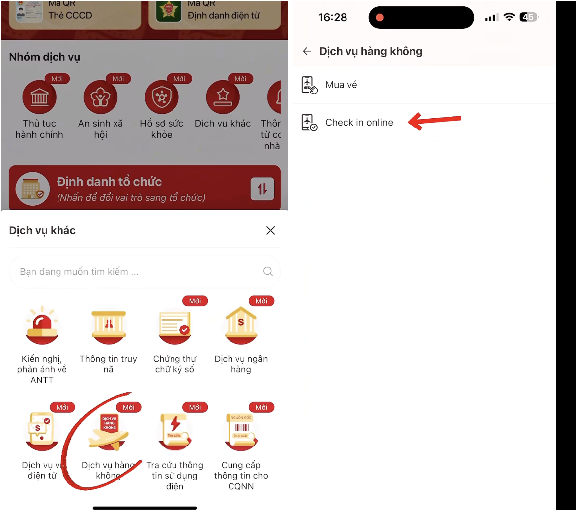 Ngoài ra, trong nhiều trường hợp, hành khách có thể sử dụng ứng dụng VNeID trên điện thoại để thay thế CCCD vật lý khi làm thủ tục tại sân bay trong nước. Việc sử dụng VNeID giúp giảm nguy cơ thất lạc giấy tờ, đồng thời thuận tiện hơn trong bối cảnh hành khách phải di chuyển nhanh và mang theo nhiều đồ cá nhân. Tuy nhiên hành khách vẫn nên đảm bảo điện thoại đủ pin và ứng dụng đã được xác thực đầy đủ trước chuyến đi.