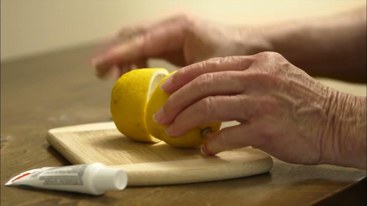Kerrie sử dụng một quả chanh tươi, cắt làm đôi rồi thoa một lượng kem đánh răng lên bề mặt của hai nửa quả chanh. Sau đó, cô cho chanh đã thoa kem đánh răng vào lồng máy giặt trống, rồi chạy chương trình giặt nhanh với nước rất nóng.