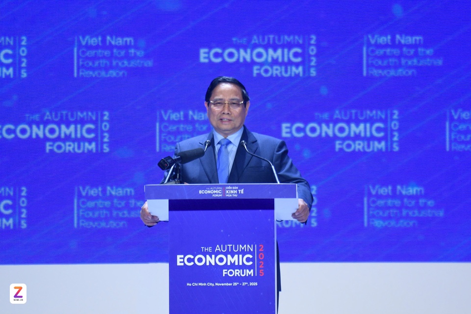 Thủ tướng Phạm Minh Chính phát biểu tại Diễn đàn Kinh tế Mùa thu năm 2025. Ảnh: Duy Hiệu. |