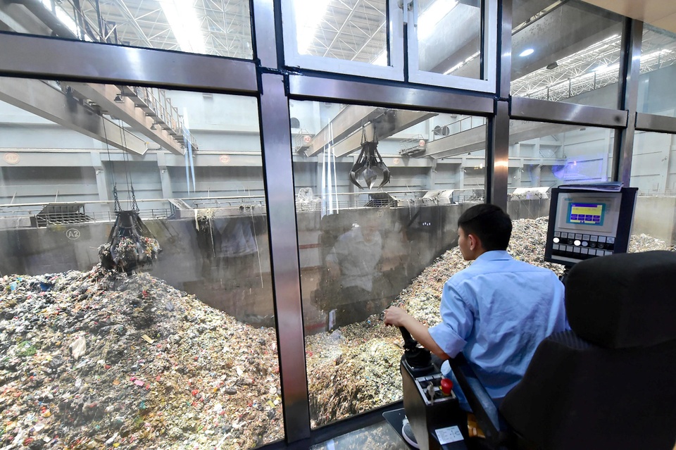 Mọi người làm việc tại một nhà máy điện đốt rác ở Nam Kinh, Giang Tô (Trung Quốc). Ảnh: Alamy. |