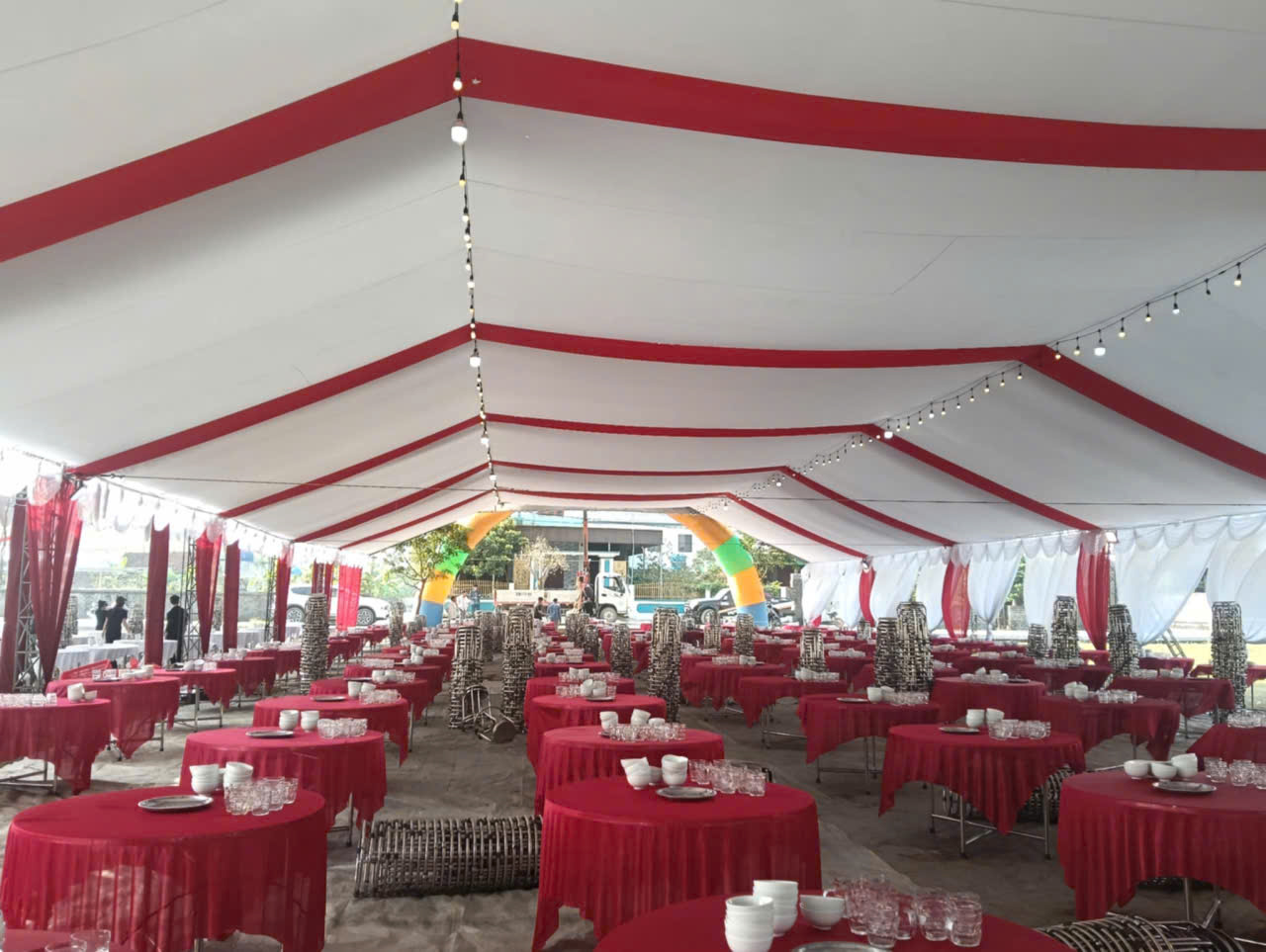VnExpress thông tin từ sáng sớm nay (28/1), không khí tại xóm Hưng Yên Bắc 2 đã tất bật. Người dân trong xã, mỗi người một tay phụ giúp gia chủ dựng rạp, kê bàn ghế và chuẩn bị thực phẩm.