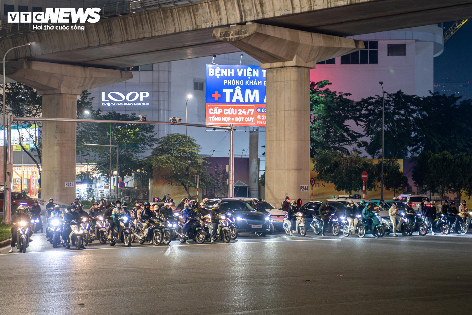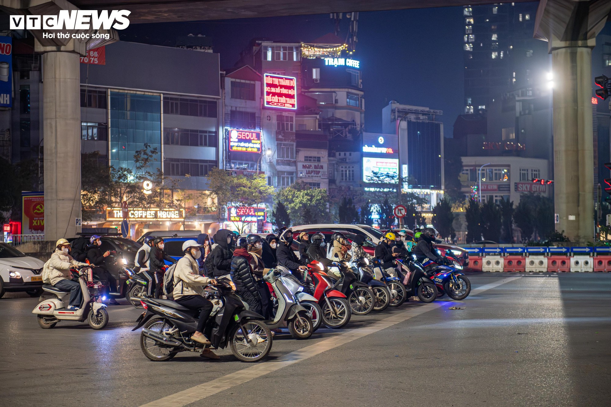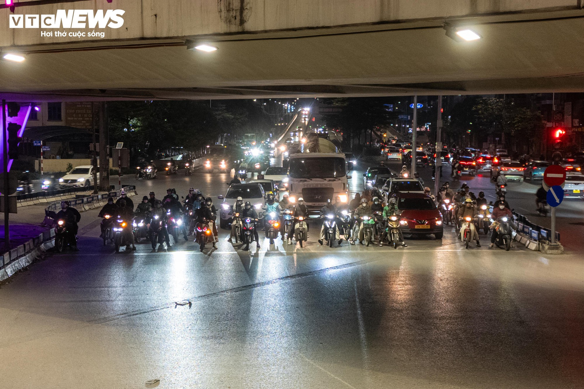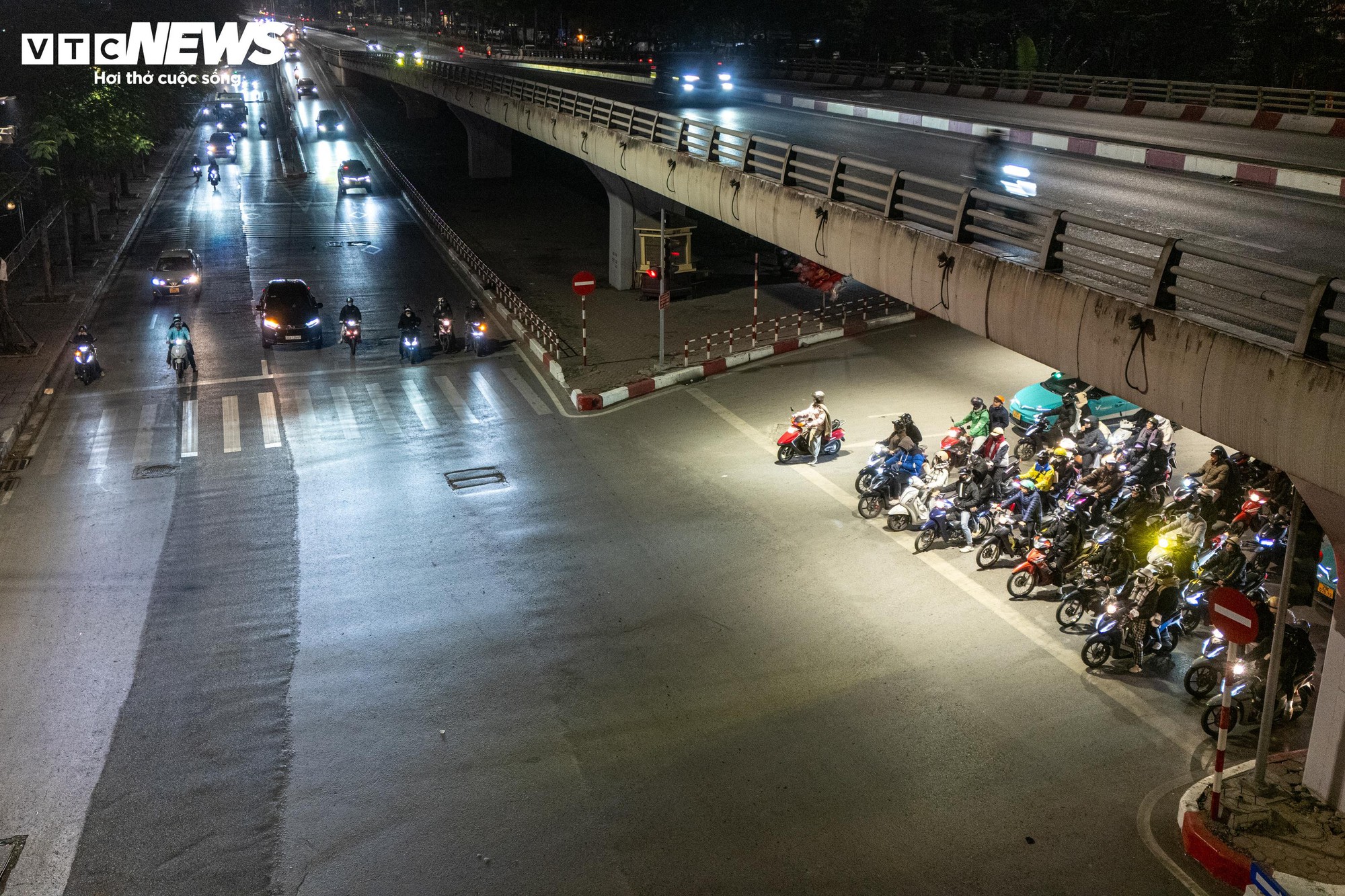 Đây từng là khu vực thường xuyên xảy ra ùn ứ, lấn làn, vượt đèn đỏ vào giờ cao điểm. Tuy nhiên, trong đêm đông giá rét, các phương tiện khi đến nút giao đều chủ động giảm tốc từ xa, dừng xe đúng vạch sơn, không còn cảnh chen lấn hay tranh thủ vượt đèn khi đường vắng.