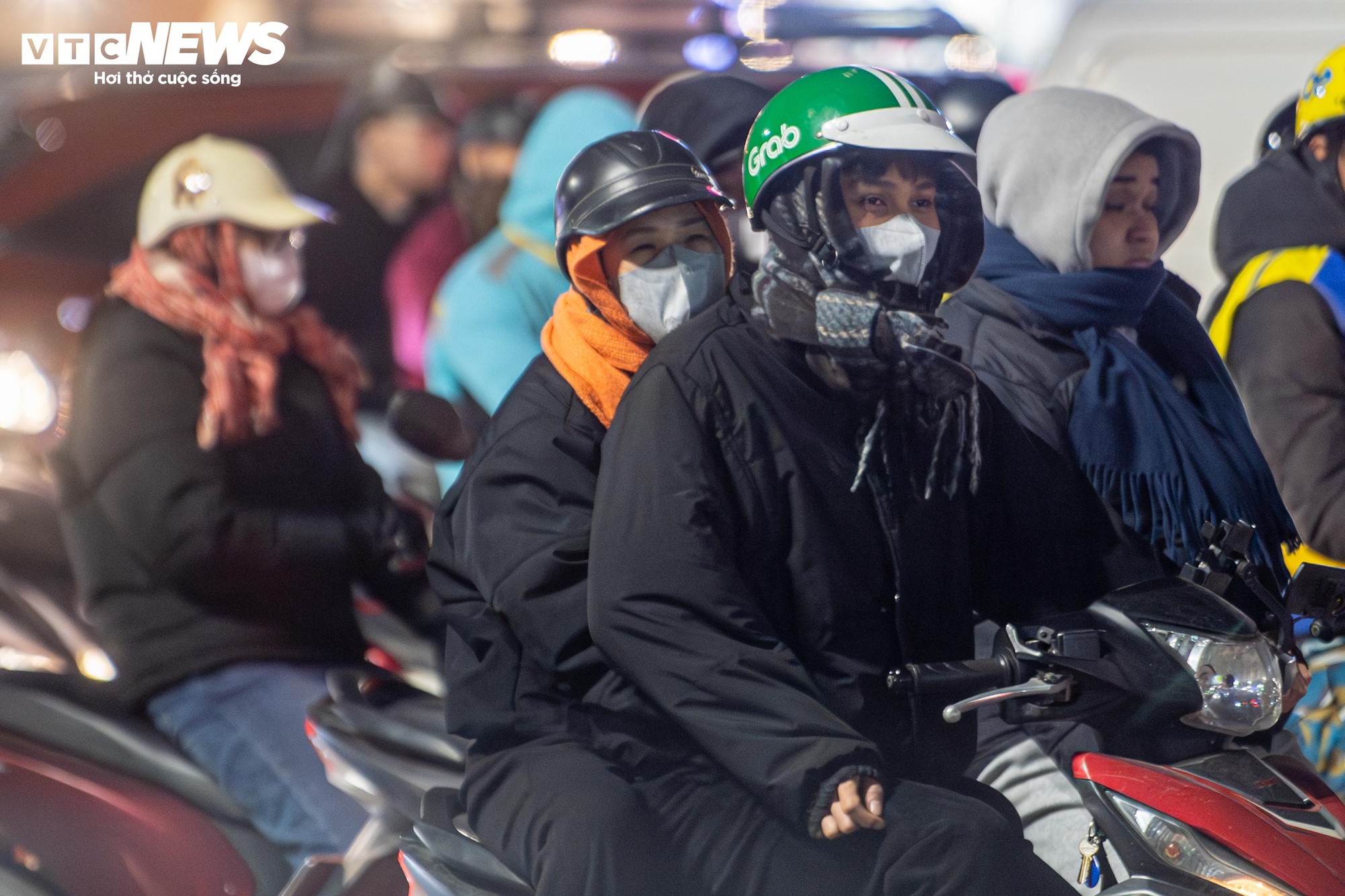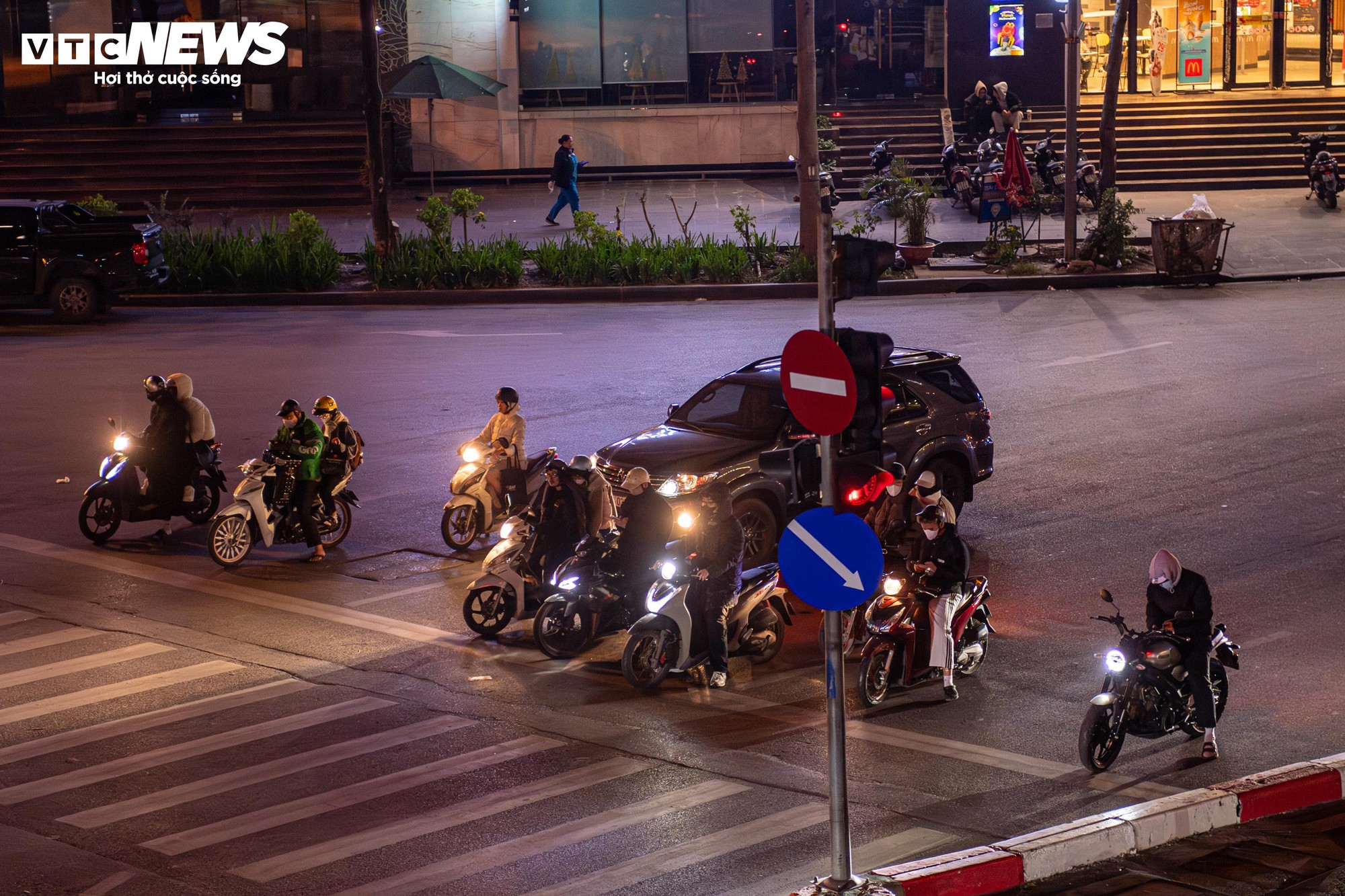 Theo ghi nhận của PV Báo Điện tử VTC News vào đêm 6/1, khi nền nhiệt Hà Nội giảm sâu xuống ngưỡng 10°C, không khí lạnh buốt bao trùm khắp các tuyến phố. Đêm muộn, đường sá thưa thớt phương tiện, nhưng tại nhiều nút giao, hình ảnh người dân kiên nhẫn dừng xe chờ đèn đỏ, xếp hàng ngay ngắn vẫn diễn ra đều đặn.