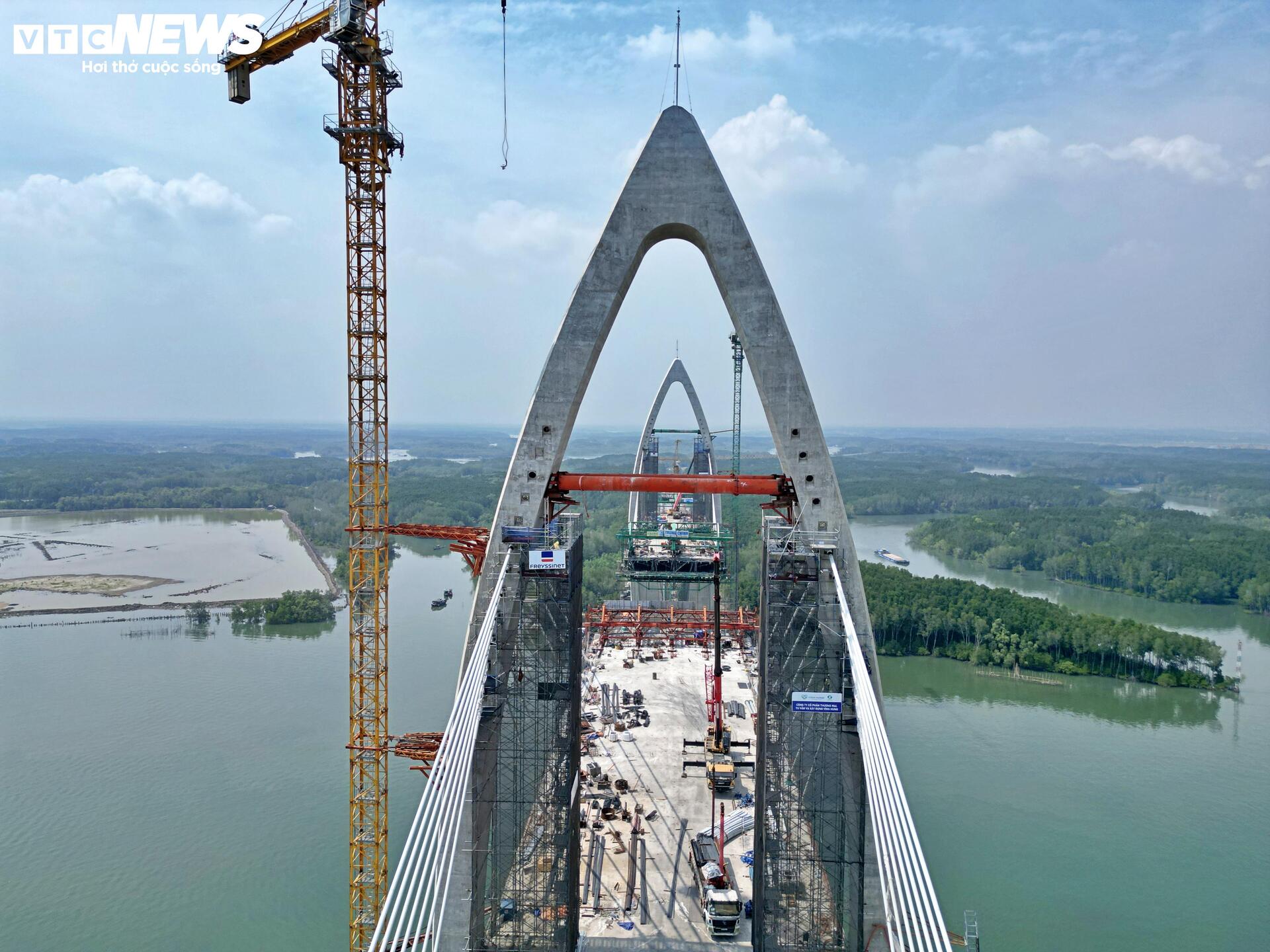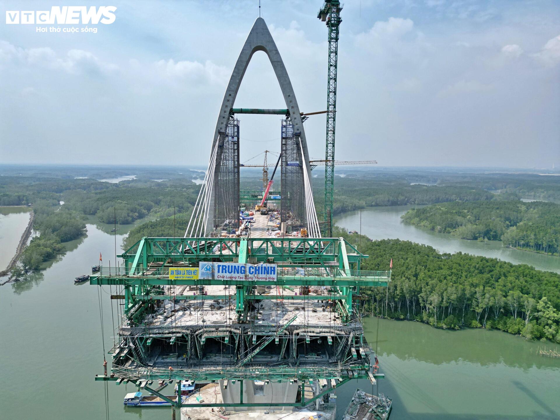 Ở khu vực cầu chính, gói thầu số 39 đang tập trung thi công thân tháp và các nhịp dầm extradosed - kết cấu đặc biệt đòi hỏi kỹ thuật cao. Các nhịp dầm từng bước vươn ra từ hai phía, hướng tới thời điểm hợp long. Giá trị xây lắp của gói thầu này đạt gần 64%, tương ứng hơn 1.000 tỷ đồng.