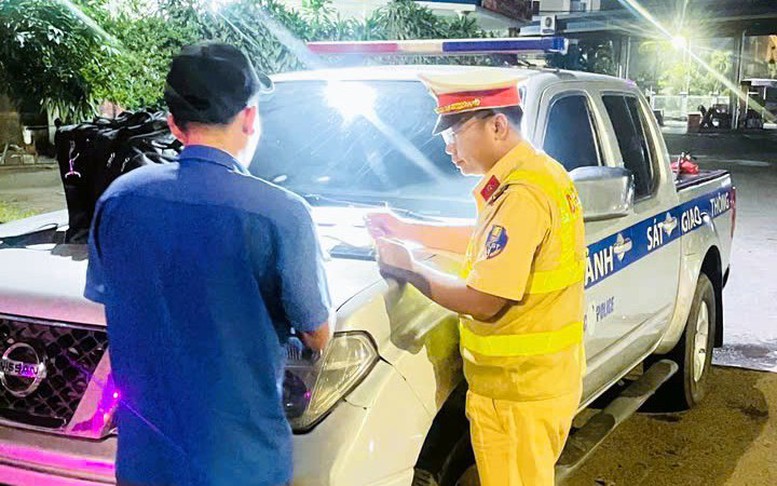 Cảnh sát giao thông kiểm tra nồng độ cồn người đi đường
