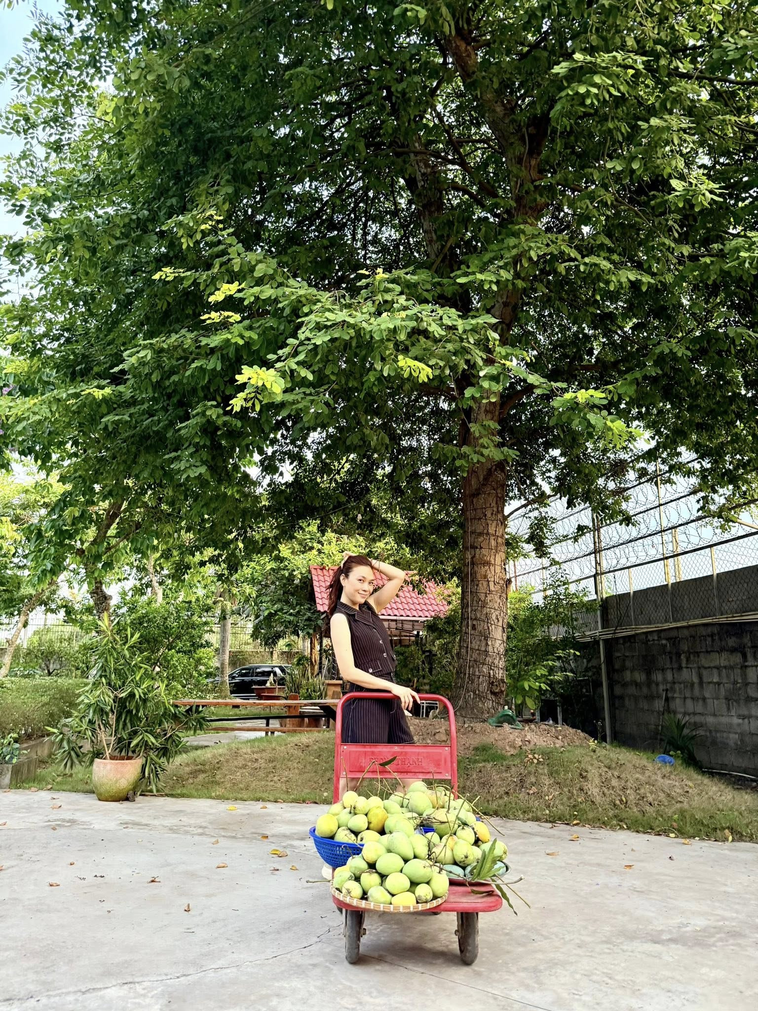 Diễn viên Midu thảnh thơi thưởng thức trà chiều trong không gian yên bình dịp cuối tuần.