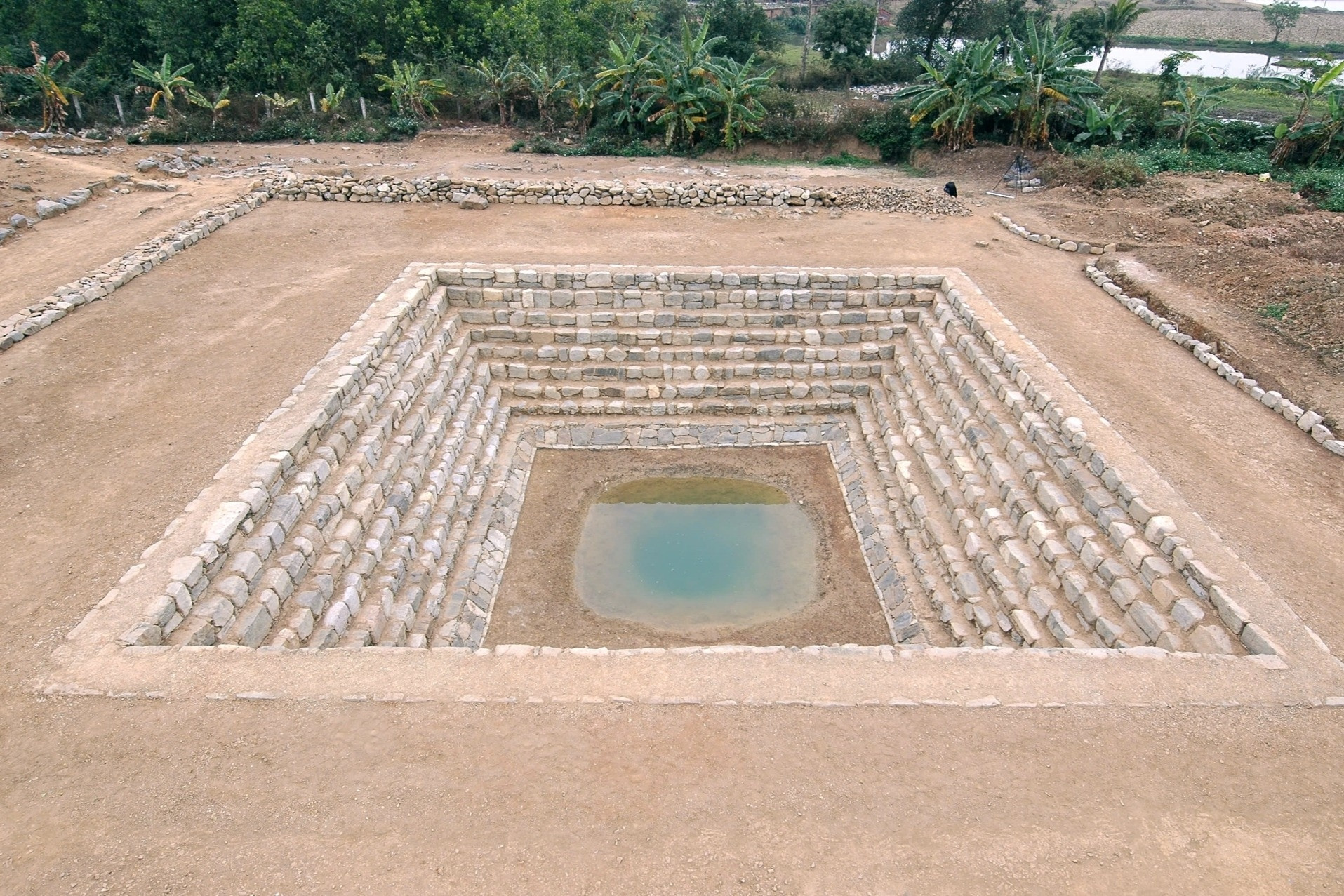 Phía trước đền có giếng ngọc xây dựng hoàn toàn bằng đá xanh.